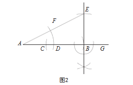 黄金分割点的构造难点在于无理数√5,教师可引导学生联想与√5有关的数学知识。学生联想到若直角三角形的两条直角边长度分别为1与2,则斜边长度为√5;矩形的邻边长分别为1与2,则对角线长度为√5。接着,学生完成尺规作图(如图2)。