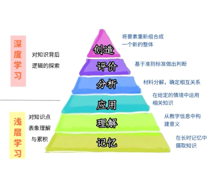 美国教育心理学家布鲁姆将认知思维目标细分为记忆、理解、应用、分析、综合与评价[1]。其中,记忆与理解被视为浅层学习的范畴,其复习策略多依赖死记硬背和简单回顾。应用、分析、综合及评价构成了深度学习的核心。深度学习注重文字背后的深层含义,旨在通过激发学生内在学习动机、建立新旧知识间的联系及投入高水平认知活动来实现学习目标。