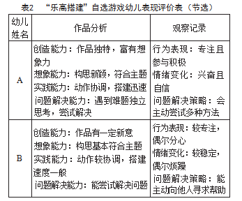 过程与结果的融合不仅能全面揭示幼儿在游戏中真实的状况,为教师提供更精准、有效的指导依据,还能让教师清晰地捕捉到幼儿的发展轨迹,从而制订出有针对性的教学策略。
