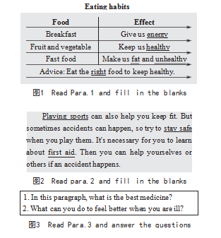 仍以仁爱版英语八年级(上册)Unit 2 Topic 3中Section C的阅读教学为例。基于对Section A、Section B的学习,学生已经掌握了表达建议的短语,并能够根据上下文或图片猜测句子和单词的意思。然而,学生对如何保持健康还没有形成较为全面的认识,且对提建议类的文本阅读和写作缺乏经验。
