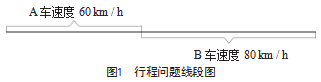 苏教版数学四年级(下册)“解决问题的策略”这一单元旨在让学生通过学习掌握画图策略。教师可以基于此设计探究类游戏,在推动学生主动思考的同时,提高其问题解决能力。具体而言,教师可先利用课件展示行程问题的线段图(如图1),图中的线段被分成长短不同的两段,并标注了“A车速度60 km/h”“B车速度80 km/h”,要求学生反向推理出对应的数学问题,并口头描述。比如,有学生提出问题:“A、B两车从两地出发相向而行,2小时后相遇,求两地间的距离。”有学生在这一问题上补充细节,进行合理变式:“A、B两车从两地出发相向而行,若B车晚出发1小时,2小时后两车相遇,求两地间的距离。”由此,学生通过结合线段图反向推导问题的方式,掌握了用画图的方式表示数量关系的方法。在此基础上,教师还可以向学生讲解其他画图策略,为学生后续展开探究奠定良好基础。