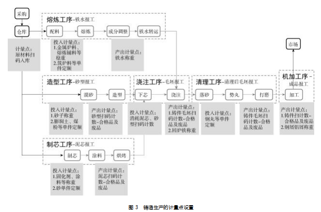 3.3.2 MES系统在铸造生产中的设置分工序、实时计量核算,见图3。