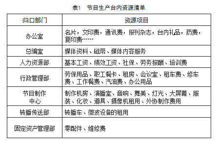 为强化成本意识,加强经济核算,根据开展广播电视业务活动及其他活动的实际需要,实行内部核算管理。广播电视台内部核算项目由归口部门管理。具体如表1所示。