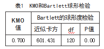 由于原始数据的单位不同,为了消除量纲的影响,对其进行标准化处理。标准化后的指标数据通过KMO(0.70)和Bartlett检验(P<0.01),满足因子分析条件(见表1)。