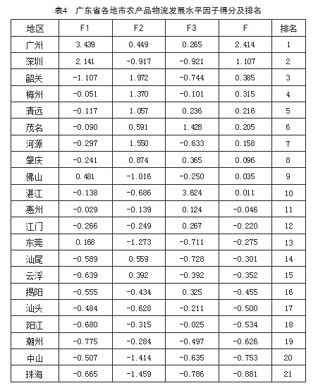 (一)基于因子分析的广东省农产品物流发展水平评价
