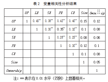 OP=β0+β1LE+β2SE+β3PE+β4 CE+β5Size+β6Ownership+ε