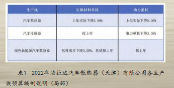成本预算编制待优化。现今,汽车配件企业成本预算以预先设定的标准成本为基础,采用增量预算法,结合上期成本预算实际执行历史数据与预算期经济活动变化编制,过度依赖历史数据与人为主观判断,存在精准度偏差的问题。2022年企业各生产线预算编制说明见表1。