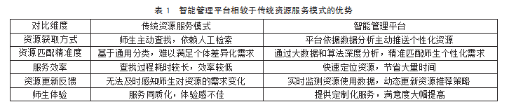 智能管理平台依托大数据与人工智能技术,可深度剖析师生资源使用习惯和需求,有效提升资源服务效率与质量,显著降低师生查找资源的时间成本。表1清晰地展现了智能管理平台相较于传统资源服务模式的优势。在搭建该平台时,中学图书馆需要分步骤有序推进。