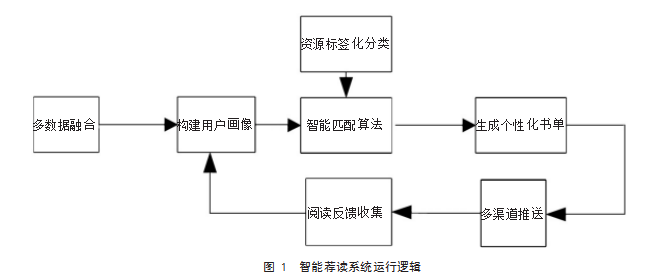 部署智能荐读系统能够精准匹配学生的阅读兴趣与知识水平,激发其阅读热情,帮助学生构建个性化知识体系,同时减轻教师的阅读指导负担。部署智能荐读系统需要整合图书馆的借阅记录、数字资源浏览数据,引入自然语言处理技术和推荐算法,通过一些线上渠道向学生推送个性化书单与阅读建议。为了更直观地展示智能荐读系统的运行逻辑,图1以流程图的形式呈现其核心工作流程。