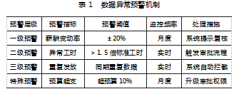 在薪酬管理环节,完善数据异常预警机制,见表1。