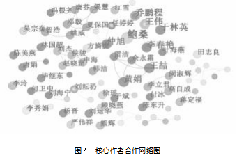 最后,从核心作者合作网络图(见图4)可以看出,学者之间的连线较少,这说明学者之间的合作较少,呈较为松散的特征,进一步表明该领域研究主要以独立的研究团队为主,团队之间鲜有合作。
