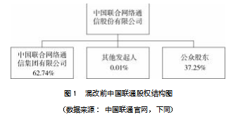 通过混合所有制改革,中国联通建立了多元化的公司股权所有制结构,与此同时将进行董事会重选。图1显示的是中国联通在混合所有制改革之前的股权结构图。根据图可以看出,混改前,中国联通以62.74%的股份占据绝对控股地位,其股权结构呈现高度集中特征。同时持股前十的国有法人共计持股65.05%,体现了其作为央企的特殊性质。