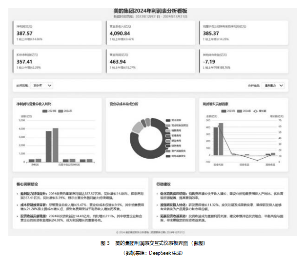 基于这一背景,本文提出了基于DeepSeek的财务数据分析与可视化并针对DeepSeek模型在财务数据分析与可视化的落地过程进行全流程验证,并量化其效率提升。以M集团股份有限公司2023—2024年的年报财务数据为例,深入探讨其在财务数据分析与可视化中的应用。本文聚焦两个核心问题:如何通过人机协同模式提升DeepSeek在财务分析中的产出质量?Deep-Seek生成的分析结果能在多大程度上提高现有工作流程的效率?