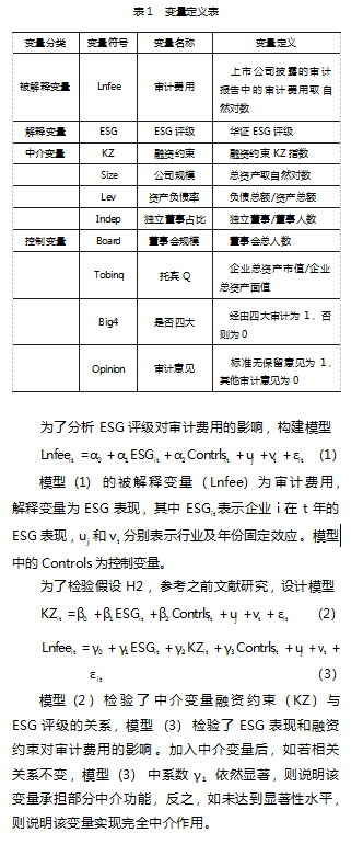 关键词:审计费用;ESG表现;融资约束;中介作用