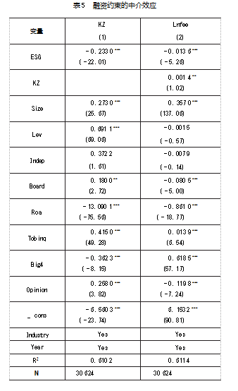 H2:融资约束在ESG对审计费用的影响中发挥了中介作用。