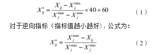 通过功效系数法的标准化公式,先将各指标实际值转化为单项得分,对于正向指标(指标值越大越好),其标准化公式为: