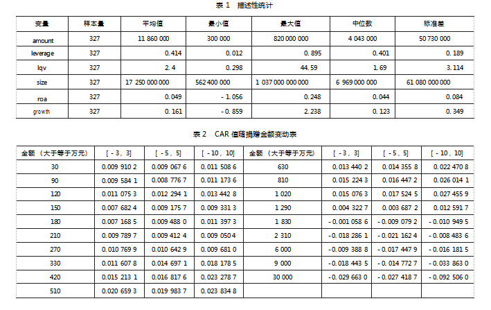 关键词:公司大额捐赠;公告效应;事件研究法;公告程序措辞