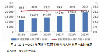 由图2所示,截至2023年底,我国农村宽带用户总数达1.92亿户,全年净增1 557万户,同比增长8.8%,增速较城市宽带用户高1.3个百分点。数字技术创新能力持续提升,数据要素价值备受重视,为互联网产业的发展注入了新的活力。例如,通过卫星遥感、无人机巡航、物联网等技术手段,实现了对农田环境、作物生长状况的实时监测和数据分析,农民能够自主完成耕作、播种、施肥、收割等作业任务,降本增产。