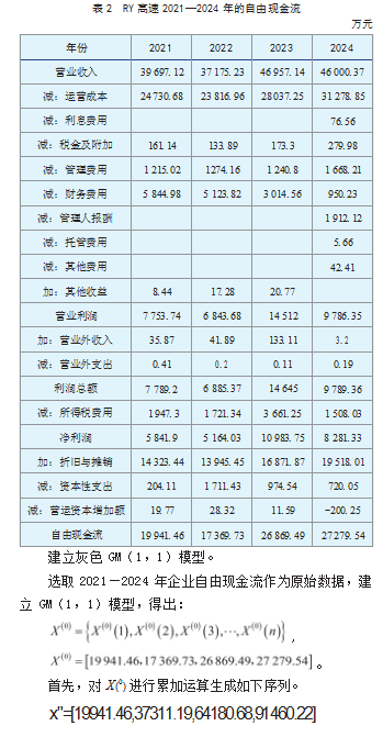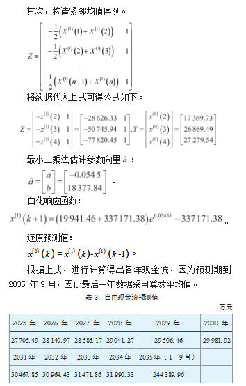 基于灰色预测模型GM(1,1)的现金流折现法是一种结合了灰色系统理论和传统现金流折现技术的方法。“灰色”一词意指系统中部分信息已知、部分信息未知的状态,介于信息完全明确的“白色”系统与信息完全未知的“黑色”系统之间。灰色系统理论主要针对小样本、不确定性的系统进行研究,具有对数据分布无严格要求的特点,适用于数据量有限但需进行有效分析的场景。鉴于我国公募REITs市场发展时间较短,可获取的历史数据较为有限,因此选用灰色系统理论中基础且应用广泛的GM(1,1)灰色预测模型,用于预测REITs的自由现金流,从而提升估值分析的科学性与可行性。