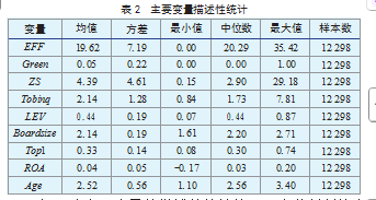 除了上述关键变量外,考虑到企业自身的特征也会对创新效率产生影响,模型中还纳入了一系列控制变量Controlit。借鉴现有学者[6,11]的研究,选取托宾q值、财务杠杆、董事会规模、股权集中度、资产收益率、上市年龄作为控制变量。此外,Firmi代表企业的固定效应,Timet代表年份的固定效应,εit为残差项,具体变量定义见表1。