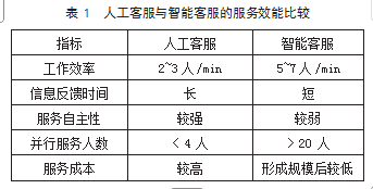 在公共服务领域,人工智能的应用能显著提升服务效能。以智能客服为例,依托自然语言处理、深度学习等技术,具有24 h持续响应和多任务并发处理能力,相较于人工客服可以提高工作效率、缩短信息反馈时间、增加并行服务人数、降低服务成本,如表1所示。在基层政务服务中,通过部署智能政务机器人,群众在社区服务中心即可办理相关业务,提高群众满意度。