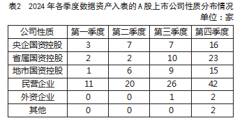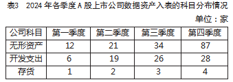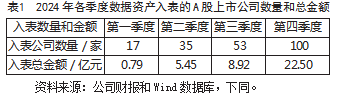 2024年各季度A股上市公司数据资产入表数量和总金额如表1所示。