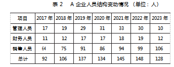 与此同时,销售人员从2017年的64人持续增至2023年的128人,阿米巴单元复制裂变已颇具规模,反映出数字化工具对市场开拓的赋能作用。通过客户资源库与人才智库的联动,销售团队人均客户签约量提升,“减员增效”现象表明数字化转型提升了组织敏捷性,使企业能够以更精简的团队支撑更高效的管理与运营,见表2。