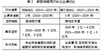 协议调整的效果立竿见影,见表4。在新的激励框架下,新丽传媒管理层迅速调整状态,2020—2022年连续3年超额完成最高业绩目标,分别实现净利润4.06亿元、5.06亿元和5.12亿元,为阅文集团贡献了稳定的利润来源。