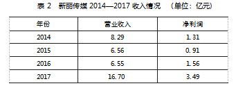新丽传媒成立于2007年,是中国顶级的影视内容制作公司,以其“精品化”战略在业内著称,曾出品《我的前半生》《白鹿原》《羞羞的铁拳》等多部脍炙人口的影视作品。在被收购前,新丽传媒展现出强劲的增长势头和盈利能力,其2017年营业收入达到16.7亿元,净利润为3.49亿元,是一项优质资产,见表2。值得注意的是,在2018年3月,腾讯已通过旗下子公司以33.17亿元入股新丽传媒,成为其第二大股东,这为后续阅文集团的全面收购奠定了基础。