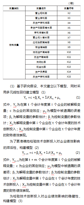 控制变量为其他影响企业绩效的变量,具体见表1。