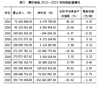 从当前实践来看,外部环境对集成电路企业融资方式、技术创新与企业绩效的作用主要体现在市场环境和政策环境两个方面。随着5G、人工智能、物联网等新兴科技领域的不断发展,MCU芯片市场需求前景广阔,为企业发展带来了巨大的市场机遇。但同时行业内竞争企业数量不断增多、市场需求更新换代迅速、供应链宏观不确定性等都是企业时刻面对的市场风险。从表5晟矽微电2022和2023年的经营数据可以看到,公司营业收入较2021年有明显下滑,净利润和每股收益出现负数。外部原因主要包括全球经济增长乏力、电子消费品市场需求疲软、经济全球化受到挑战,半导体行业处于周期底部。另外,同行业竞争激烈,市场需求下降的同时供应和库存量高企,也导致了供过于求和产品价格下滑。国家长期以来大力扶持集成电路产业为晟矽微电的发展提供了优越的产业政策环境。2013—2023年间,晟矽微电分别获得了高新技术企业、专精特新“小巨人”企业、科技型中小企业和高成长型企业等多个荣誉称号。目前晟矽微电累计已获得政府补贴约7 005万元,年均金额达到637多万元,这笔收入可以直接补充企业技术创新所需要的资金投入并间接提高了企业财务绩效。