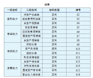 本文剔除部分数据缺失及ST企业,最终选定64家A股有色金属上市公司构成研究样本。针对该行业重资产结构、高要素成本、生产周期长、债务杠杆高等特征,构建财务绩效评价指标体系,并预先对逆向指标进行趋同化处理。最终构建包含资产负债率(逆向)及其他正向指标的多维度评价模型,具体指标选取详见表7。