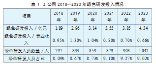 本文选取Z公司2018—2023年的绿色研发投入情况进行分析,相关情况如表1所示。