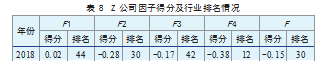 计算出各因子得分后,将因子得分代入综合财务绩效的评价模型,得到综合财务绩效得分情况,如表8所示。