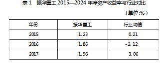 (1)净资产收益率。振华重工2015—2024年净资产收益率变动见表1。从表1看出,振华重工净资产收益率逐年上升,在2015—2018年的数字化探索阶段公司净资产收益率虽从1.23%稳步提升至2.24%,但仍略低于行业均值,其原因主要是数字化转型成本摊销压制短期盈利,导致战略成效尚未完全释放。步入2019—2024年数字化成熟阶段后,净资产收益率呈现加速上升趋势并于2022年超越行业均值,2024年达到了4.26%的新高,数字化智能工厂的降本增效红利全面显现,开始领跑重工行业,奠定盈利能力标杆地位。
