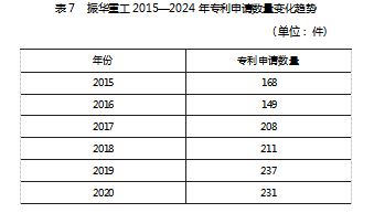 (2)专利申请数量。振华重工2015—2024年专利申请数量变化趋势见表7。从表7看出,公司在数字化探索阶段,研发活动经历短期调整,专利申请量从2015年的168件降至2016年的149件;但随着数字化进程深化,从2017年开始,振华重工年专利申请数量持续上升,在2024年专利申请数达到最高点449件。由此可见,随着数字化转型程度的深入,振华重工的创新水平得到稳步提升,稳居全球重工行业前列。