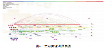 基于以上分析,进一步对聚类中的关键词进行全面分析,以寻求绿色经济研究领域的热点主题。图4关键词聚类结果显示,该领域的研究热点呈现出多元中心演进格局,经同义词合并后形成了绿色金融、绿色发展、生态文明、数字经济、绿色转型为核心的五大研究集群。由此可见,关于推动绿色经济的研究主要聚焦于上述模块展开。知识结构集中探讨了绿色金融对绿色发展的影响机制、环境治理与区域经济的优化路径,以及政策支持在区域协同中的作用。聚类分类显示我国绿色经济研究已形成多维度体系,涵盖生态系统理论、金融支持、区域协调发展、创新驱动及政策热点追踪等方面,既体现了学术界对绿色经济复杂性与系统性的深刻理解,也反映出我国绿色经济研究热点随政策导向、经济形势动态演进的特征。