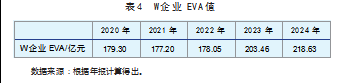 本文通过研究EVA的取值研究W企业财务柔性对企业价值的影响效果,根据W企业年报可以发现W企业近年来经济增加值一直在持续上涨,这表明W企业的价值创造能力较好,W企业的财务柔性储备给W企业带来了价值提升作用。因此可知,良好的财务柔性储备可以给企业价值提升带来促进作用,一个企业要想获得可持续发展,就要优化自身的财务柔性管理,参见表4。