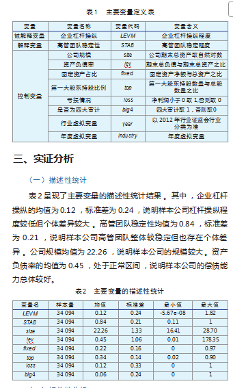 高管团队稳定性与企业杠杆操纵的关系研究论文