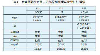 (二)高管团队稳定性、内部控制质量与企业杠杆操纵