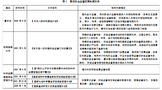 高校财会监督政策制度体系见表2。