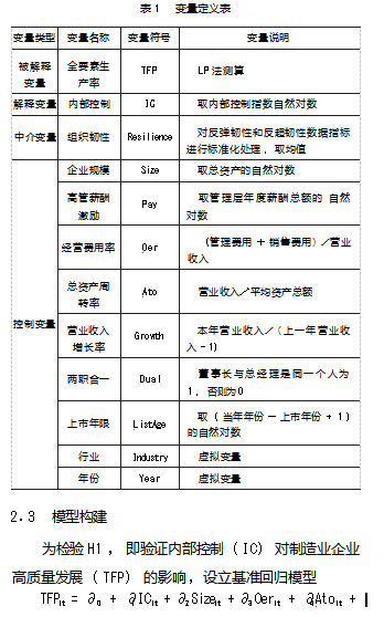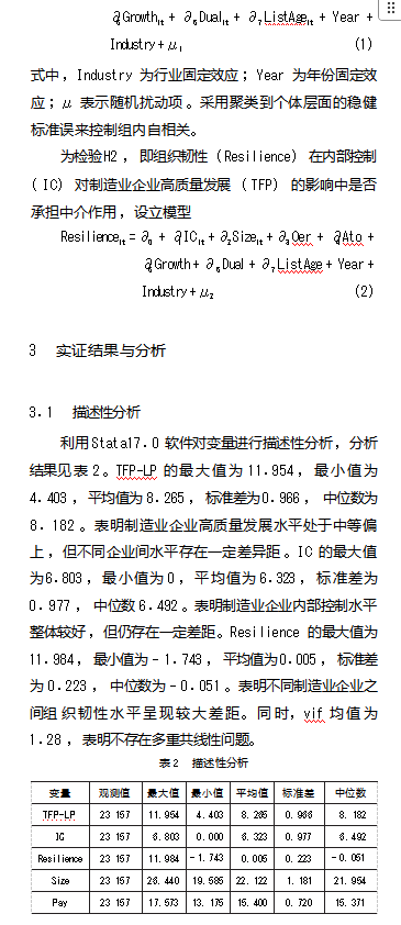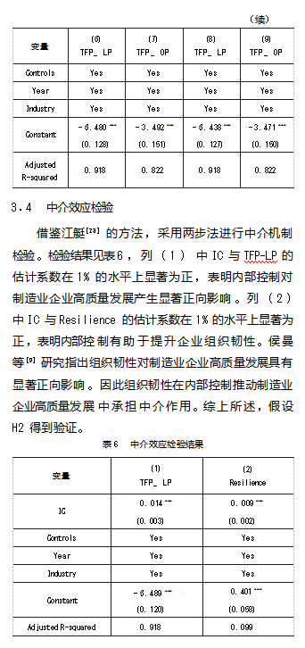 内部控制能否促进制造业企业高质量发展? —基于组织韧性中介效应的检验论文