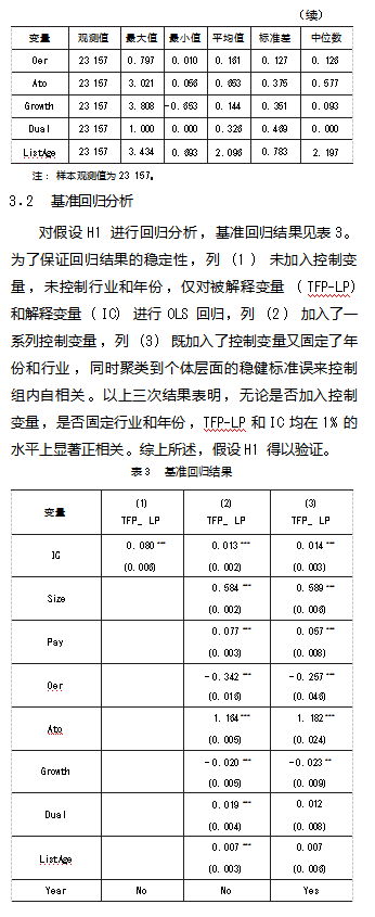 内部控制(IC)。借鉴胥朝阳等[19]的方法,采用迪博数据库中内控指数取对数来衡量企业的内部控制质量。