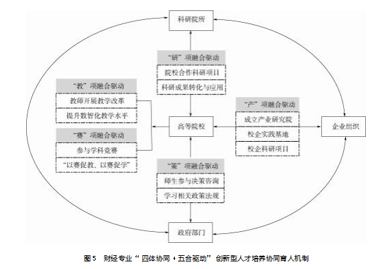在数字经济背景下,高等院校财经专业创新型人才培养的协同育人机制需要不断完善。我国高等院校财经专业可以建立“四体协同+五合驱动”创新型人才培养协同育人机制。