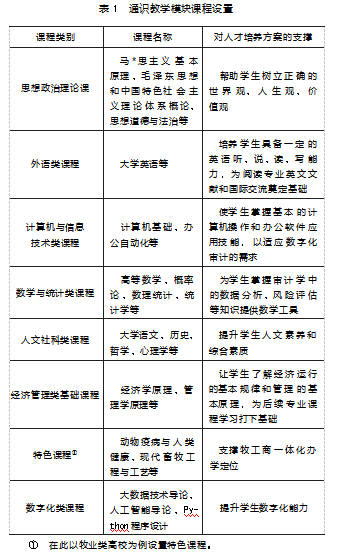 通识教学模块主要使学生具备良好的思想道德素质、人文素养、科学精神和跨学科知识基础,为专业学习和未来发展提供支撑,培养具有社会责任感、创新精神和实践能力的高素质人才[9]。具体课程设置见表1。