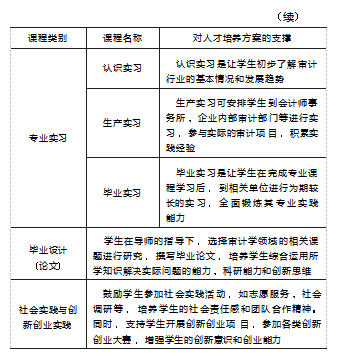 一是培养模式多元化,除了传统的课堂教学模式,还可以开展线上线下混合式教学、跨校联合培养、国际合作培养等多种模式;二是课程体系多元化,课程设置体现了学科交叉、产教融合、数字赋能的新文科特征;三是人才培养多元化,既满足国家审计、内部审计和社会人才的需求,又与国外高校合作开展交换生项目或联合培养计划,拓宽学生的国际化视野,使其了解国际审计准则和先进的审计理念。