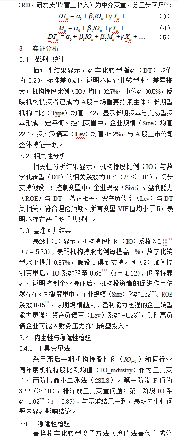 机构投资者持股对企业数字化转型的影响研究论文