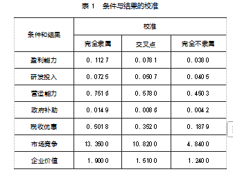 数据校准是指赋予案例集合隶属的过程。将75%、50%和25%作为3个校准锚点值,即完全隶属、交叉点和完全不隶属。由于一些样本校准值为0.5,不能包括在真值表分析中,参考FISS[23]、DU和KIM[24]的相关研究,将变量校准后恰好为0.5的修正为0.501。条件及结果变量的校准结果见表1。