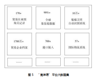大数据技术形成标准化的跨境贸易数据仓库,为充分释放数据要素潜力奠定了规模化的基础。“离岸易”平台通过对海量数据的收集、加工和分析,覆盖170个国家和地区的报关数据、全球90%以上的集装箱数据、10万余条船舶卫星档案数据等多维度、跨地域数据,形成了海量的大数据集(见图5)。平台采用分布式存储技术,对结构化数据(如贸易金额、商品编码)和非结构化数据(如物流轨迹、图像单证)进行统一管理,通过数据清洗、脱敏等预处理,构建了标准化的跨境贸易数据仓库。