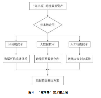 “离岸易”对广电运通来说,是一次深刻创新实践。针对跨境贸易领域原有数据割裂、核验手段不足的痛点,公司探索出了以区块链、大数据和人工智能技术深度集成的数据整合解决方案(见图4),通过技术融合创新改善了广电运通的数据治理能力,实现了跨级贸易数据存储的规模化和高质量,形成新质生产力所需的核心竞争力。